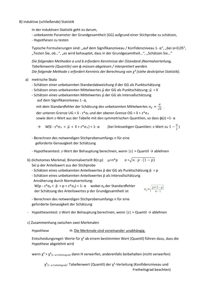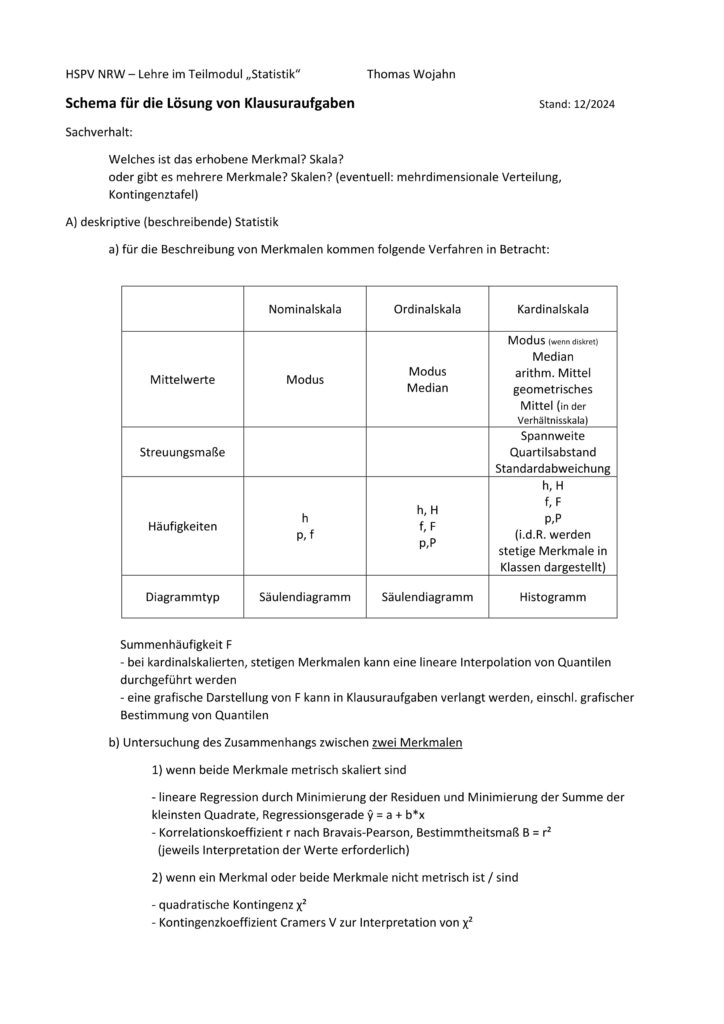 Seite 1 behandelt das Gebiet der beschreibenden Statistik,